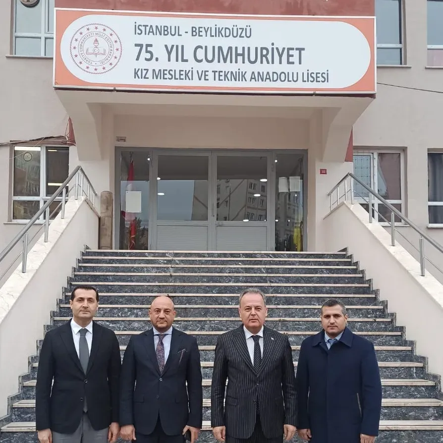 HABER: NEZİR KARAYÜN / EĞİTİMDEN HABERLER - Kariyer Günleri kapsamında Beylikdüzü Kaymakamı Bülent Karacan ile İlçe Millî Eğitim Müdürü Zekeriya Postacı, 75. Yıl Cumhuriyet Kız Mesleki ve Teknik Anadolu Lisesini ziyaret ederek öğrenci ve öğretmenlerle bir araya geldi. Okulda gerçekleşen buluşma, gençlerin geleceğe dair sorularına samimi yanıtların verildiği, yol gösterici bir sohbet ortamına dönüştü.